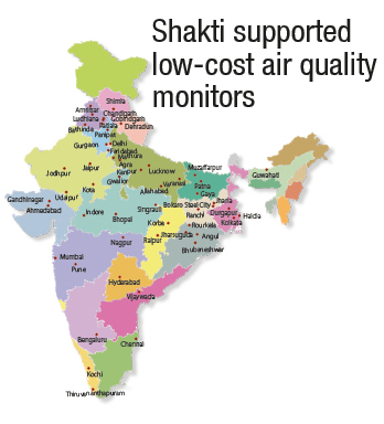 Cities need good quality data on pollution levels, affected areas, sources and related information to be able to design strong air quality management plans. But a number of Indian cities are still outside the ambit of air quality monitoring, whereas other cities (like New Delhi) have a disproportionately high number of real-time air quality monitoring stations. Increasing the availability of air quality data and making it accessible for all is an important step. Shakti is helping to close the information gap by funding the establishment of two independent low-cost ambient air quality monitoring networks, which will provide real-time measurement of PM 2.5. Combined, the two networks comprise 250 low-cost monitors in more than 50 cities and towns to provide real time and credible air quality data that can help enhance public awareness of the rising levels of air pollution as well as inform policies for better air quality management.